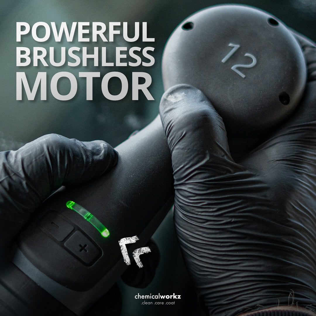 De Chemicalworkz DA12 EVO is een compacte, draadloze excentrische polijstmachine met een krachtige brushless motor.