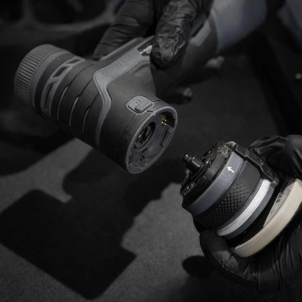 Jeder Adapter ist mit einem schaltbaren LED-Ring ausgestattet, sodass Sie auch in schlecht beleuchteten Bereichen eine perfekte Sicht gewährleisten können.