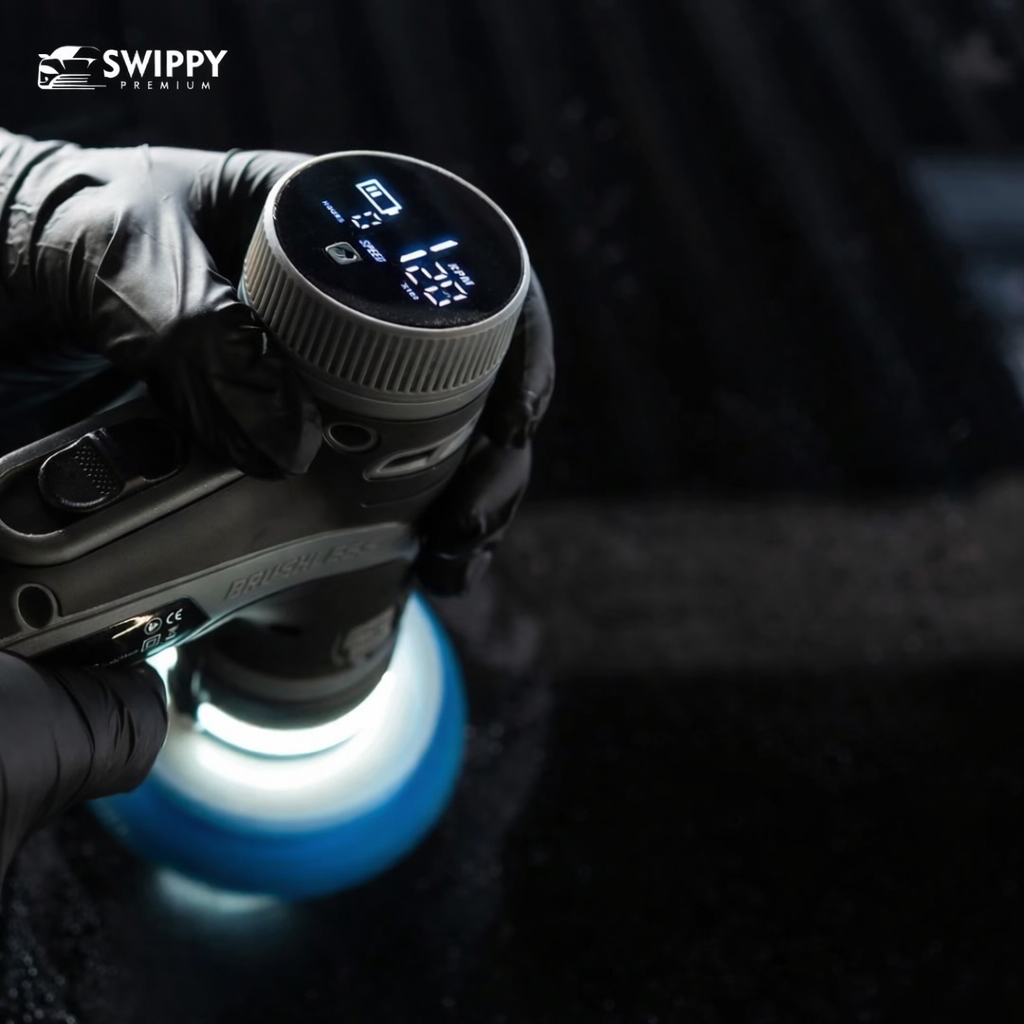 Een mini-polisher gebruik je voor precisiewerk zoals randen, emblemen, spiegelkappen, interieur en lastig bereikbare zones waar grote machines minder controle bieden.