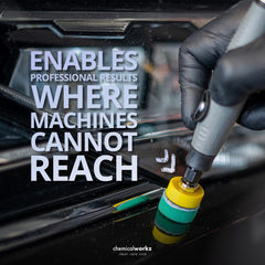 Ideal für Fahrzeugaufbereiter, Autoliebhaber und Profis, die selbst in den kleinsten Ecken perfekte Ergebnisse erzielen wollen. Die ChemicalWorkz Mini-Polierverlängerung setzt neue Maßstäbe in Präzision und Benutzerfreundlichkeit.