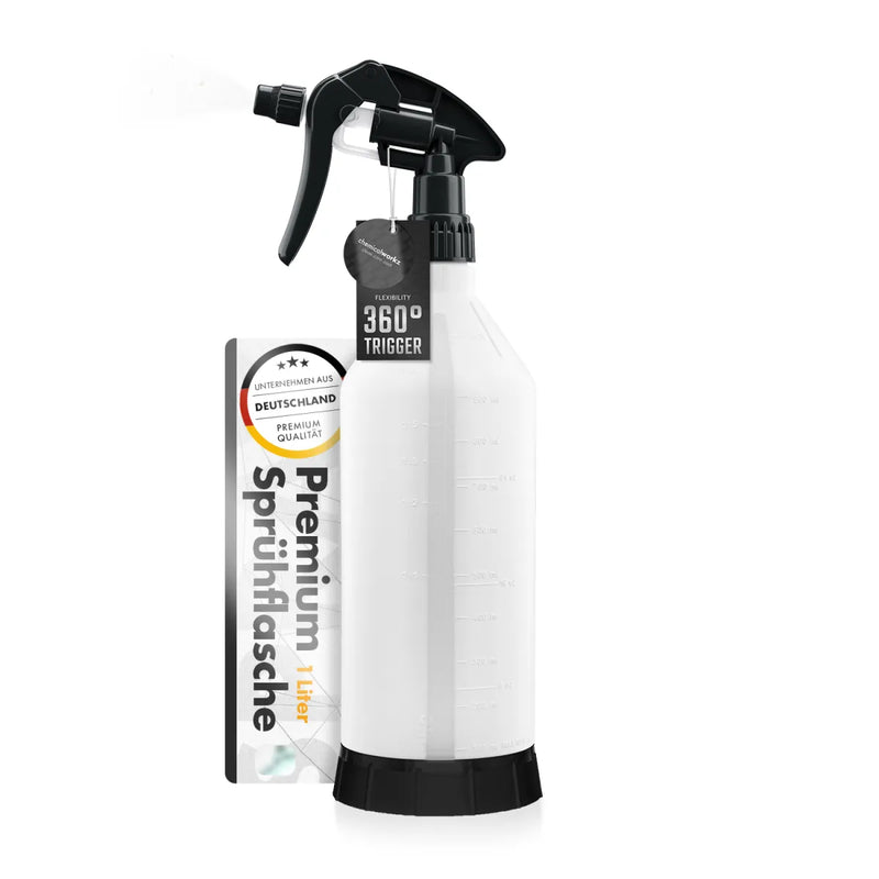 Der Chemicalworkz® 1-Liter-Sprühkopf mit 360°-Canyon-Auslöser ist die ideale Wahl für alle, die maximale Kapazität, präzise Dosierung und professionelle Qualität suchen. Die robuste HDPE-Flasche eignet sich perfekt für die Autopflege, Fahrzeugaufbereitung, Werkstattarbeiten und Anwendungen im Haushalt, bei denen größere Produktmengen benötigt werden.