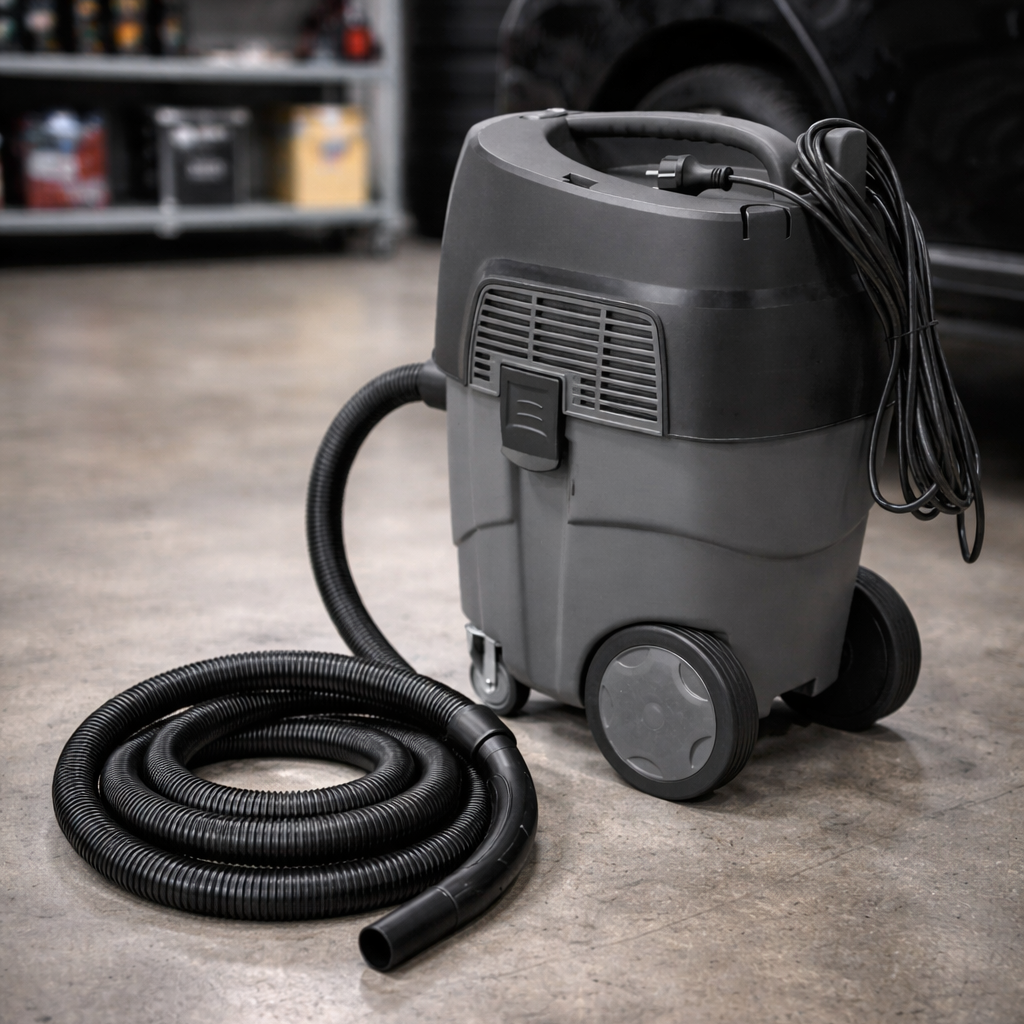 Krachtige nat/droog stofzuiger voor professioneel gebruik in autodetailing, werkplaatsen en schoonmaak.
