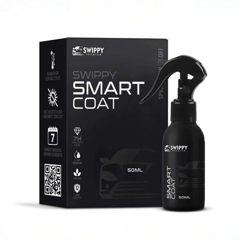 Swippy Smart Coat combineert keramische bescherming met een extreem eenvoudige applicatie. De hybride nano ceramic coating hecht direct aan de lak en zorgt voor zichtbare glans, sterke waterafstoting en eenvoudiger onderhoud — zonder een traditioneel coatingproces.